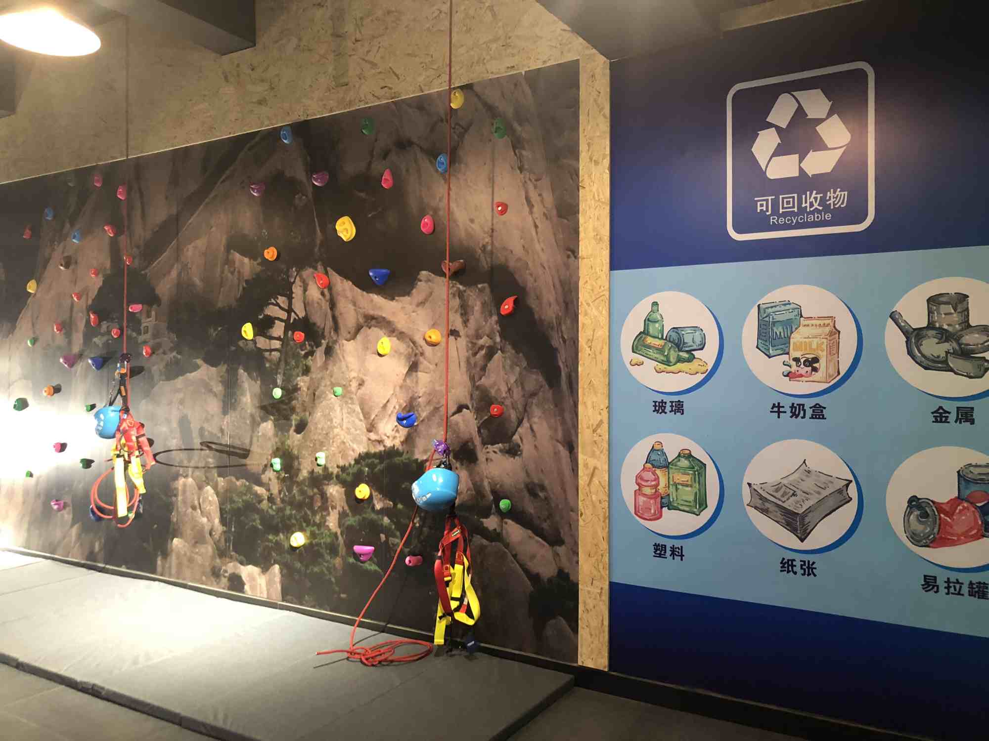 五層環(huán)保樂(lè)園,是環(huán)保教育基地的一個(gè)游戲體驗(yàn)區(qū),總共有五個(gè)游戲體驗(yàn)項(xiàng)目。分別是:1、“自行車發(fā)電體驗(yàn)”,體驗(yàn)者腳踏自行車通過(guò)人工動(dòng)能進(jìn)行發(fā)電,點(diǎn)亮燈泡,倡導(dǎo)綠色出行理念;2、“模擬娃娃機(jī)”,此項(xiàng)目通過(guò)投影將垃圾倉(cāng)中垃圾抓斗的工作的視頻投影在墻上,體驗(yàn)者通過(guò)娃娃機(jī)模擬抓垃圾的過(guò)程,提高在生活中盡量減少垃圾的產(chǎn)生的意識(shí);3、“分類能手大比拼”,體驗(yàn)者通過(guò)道具求砸中游戲墻上所規(guī)定的垃圾類別,將垃圾分類知識(shí)深入人心;4、“攀巖體驗(yàn)”,體驗(yàn)者模擬黃山放繩工攀巖山間拾撿飄落垃圾的的過(guò)程,目的是告誡大家在旅游過(guò)程中不要亂丟垃圾;5、“負(fù)重體驗(yàn)”,體驗(yàn)者模擬黃山挑山工日運(yùn)百斤垃圾的負(fù)重之旅。意在使參觀者體會(huì)環(huán)衛(wèi)工的辛苦,呼吁大家從身邊的一點(diǎn)一滴做起,愛(ài)護(hù)環(huán)境,保護(hù)我們的地球家園。
